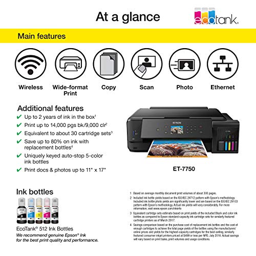 - Save up to 80 percent on ink with low-cost replacement bottles (4) - plus easy-to-fill, supersized ink tanks.